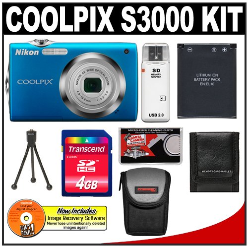 Nikon Coolpix S3000 12.0 Megapixel Digital Camera with 4x Optical Zoom (Blue) with + 4GB Card + EN-EL10 Battery + Case + Accessory Kit Review