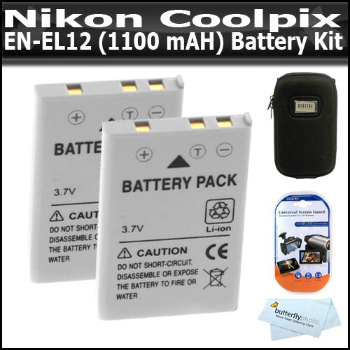 2 Pack Battery Kit For Nikon Coolpix S8100 S8000 S6000 S6100 S9100 S1000pj S1100pj P300 S610 S620 S630 S710 Digital Camera Includes 2 Extended Replacement Nikon EN-EL12 (1100 mAH) Lithium-Ion Batteries + Deluxe Hard Shell Case + LCD Screen Protectors + Review