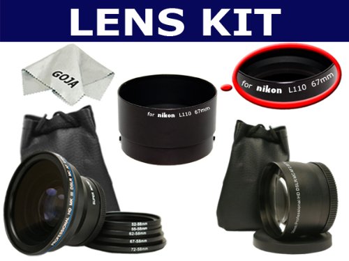 Essential Lens Kit for NIKON COOLPIX L110 L-110 Includes: 67MM Lens Adapter, 0.43X Wide Angle Fisheye Lens with Macro Portion + 2.5X Telephoto Lens + 5 pcs Adapter Ring Kit Review